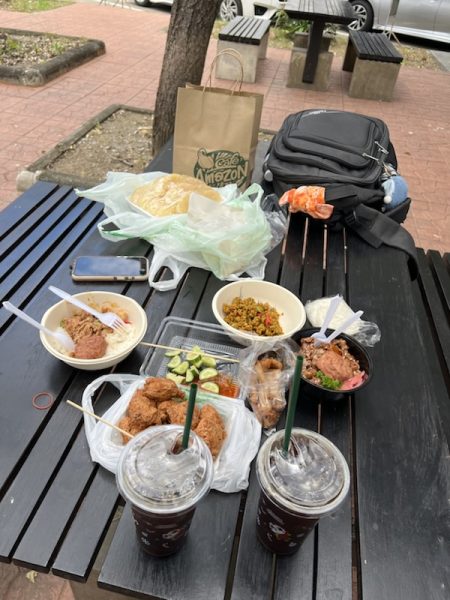 das gute hier im Krankenhaus ist, erst holt man die Wartenummer und dann auf den Krankenhausmarkt lecker Essen kaufen.